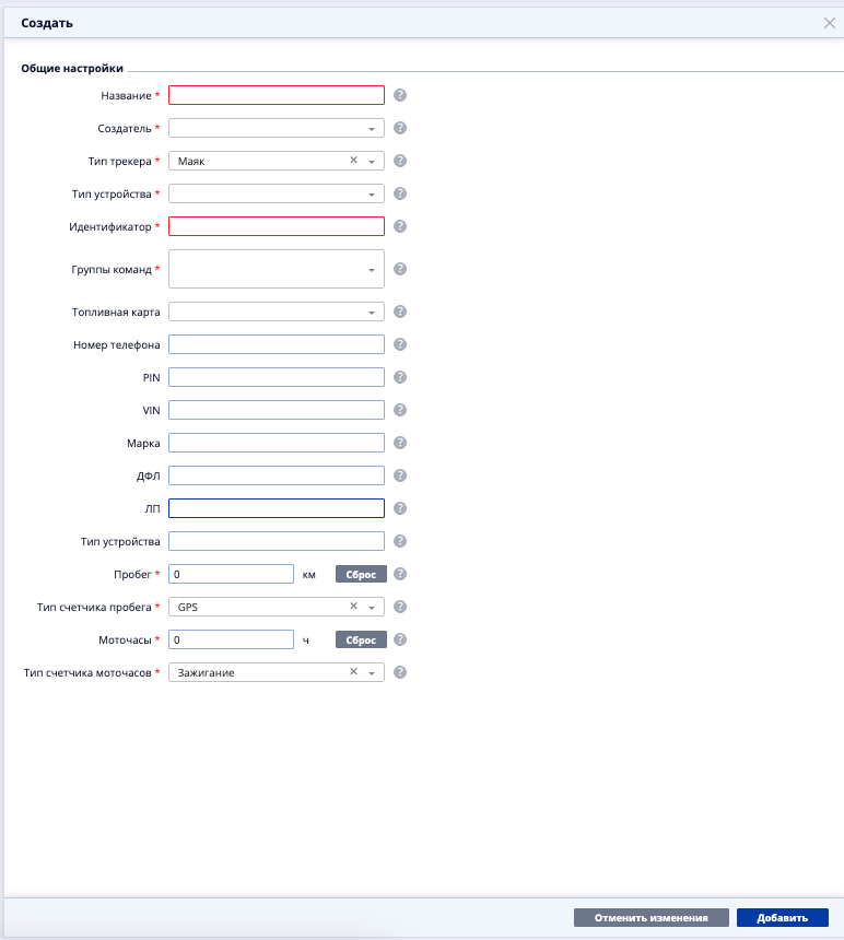 - Пробег - сразу после добавления объекта сервис будет показывать 0, пока объект не переместится минимум на 1 км;