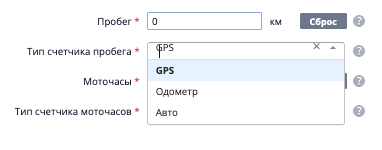 Можно указать тип счетчика пробега: