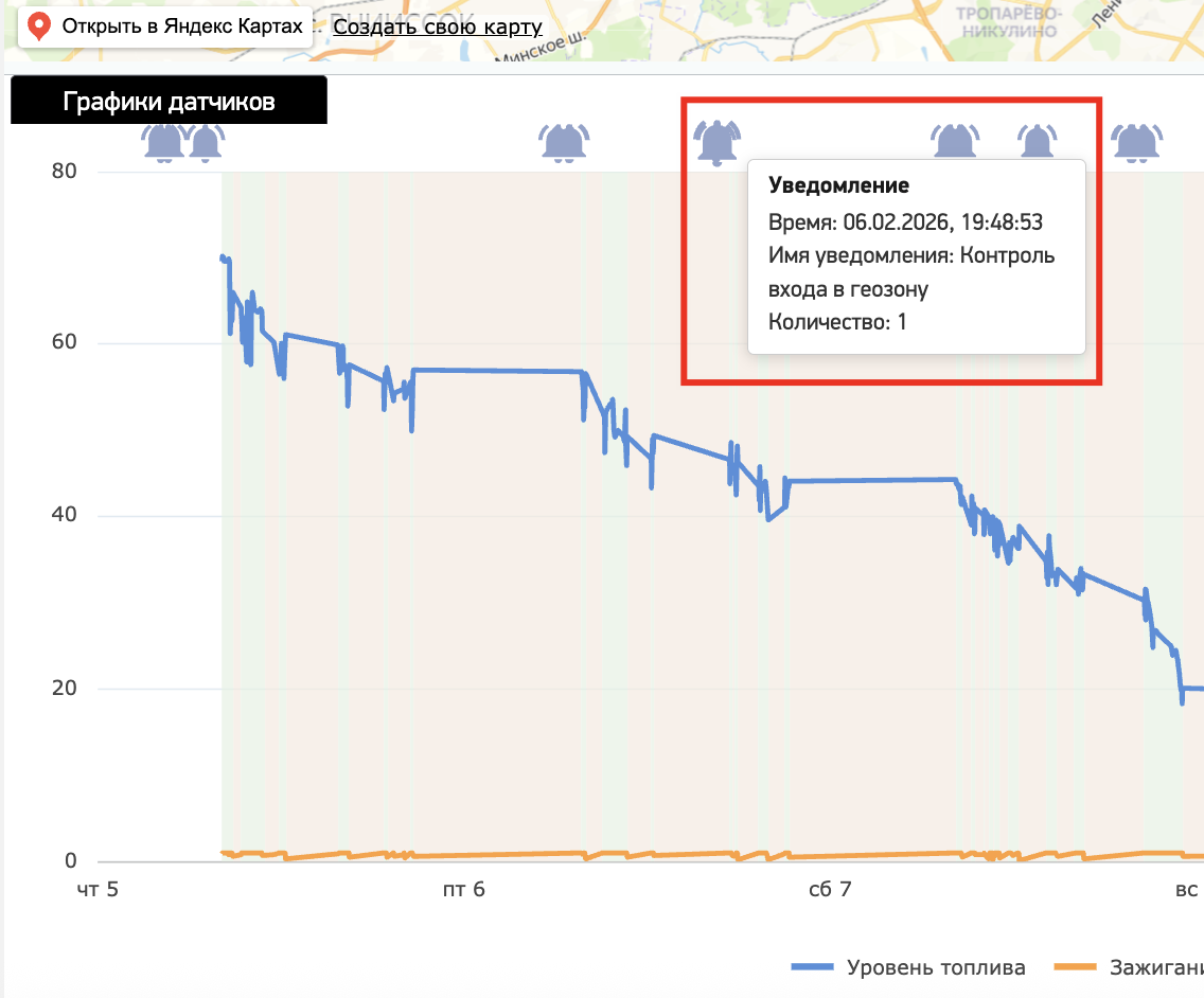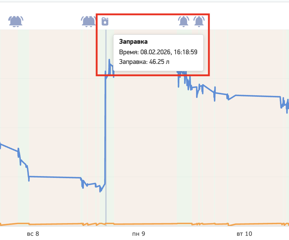 Так же на графики определяются заправки и уведомления по объекту: