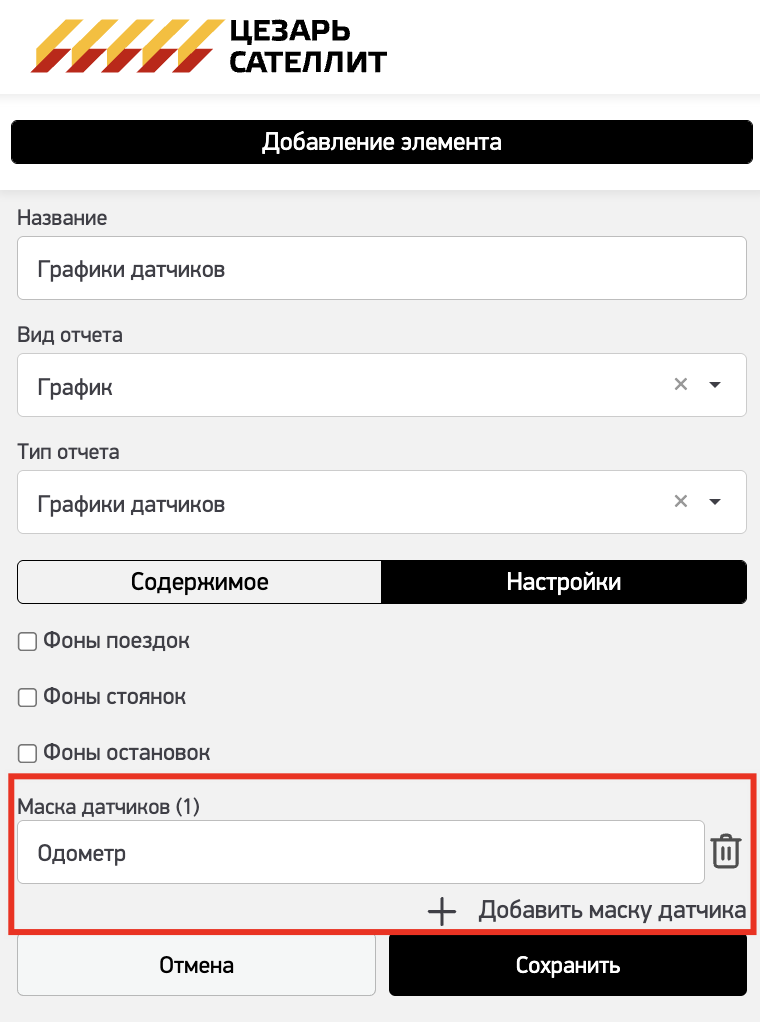 Данный отчет необходим для отображения показателей датчиков объекта в динамике и в соотношении друг с другом.