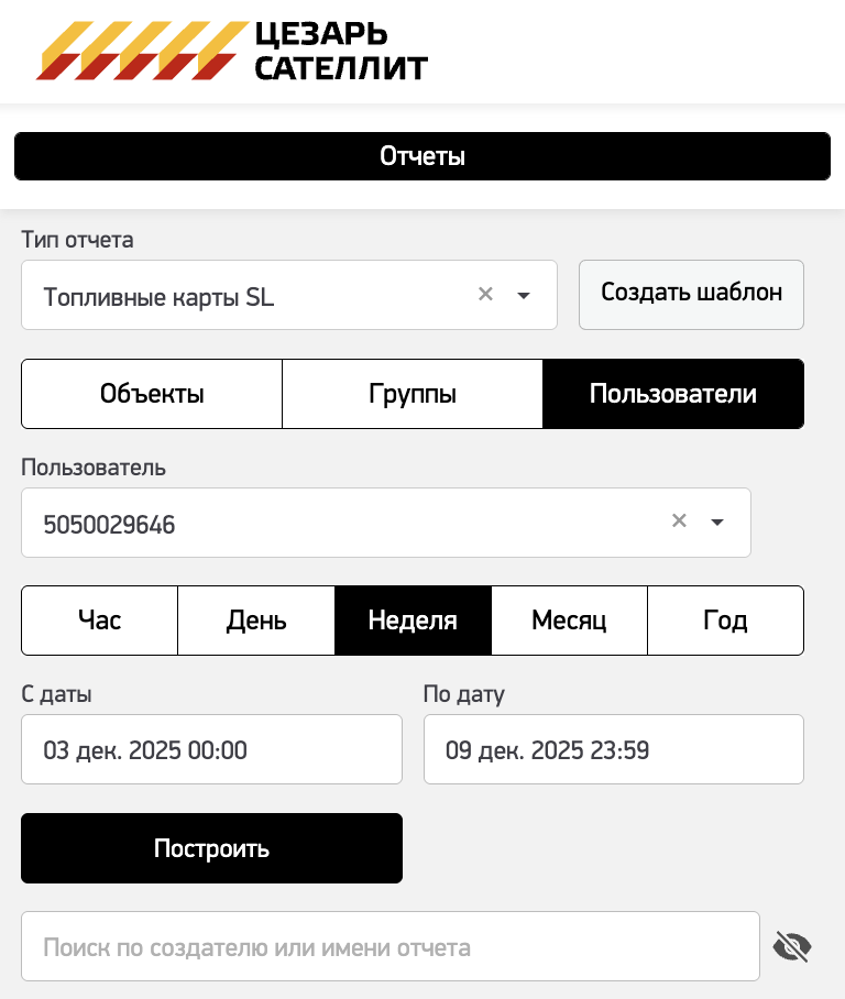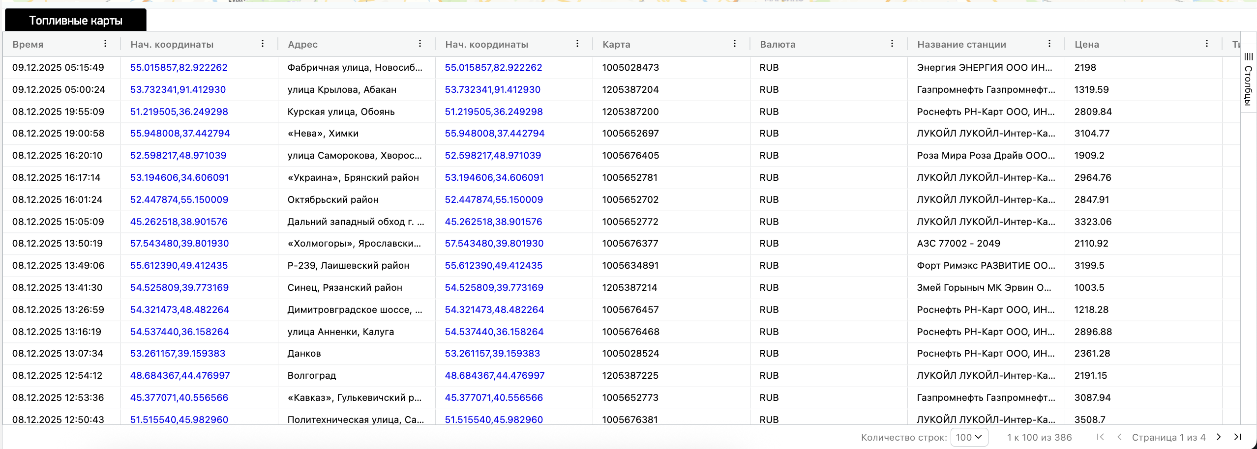 В полученном отчете будут все заправки объектов пользователя по топливным картам.