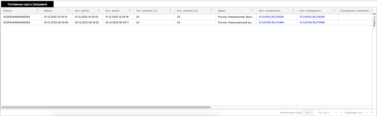 Данный отчет необходим для проверки заправок объекта по ДУТ, заправок по топливной карте и сравнения этих заправок.