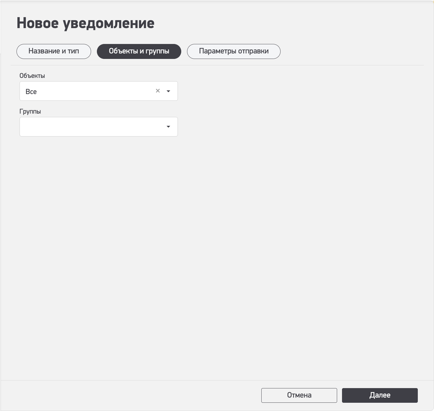 - Группы (В графы объекты или группы добавляются соответсвенные объекты или группы. Можно добавить например группу и объекты которые в этой группе не состоят.)