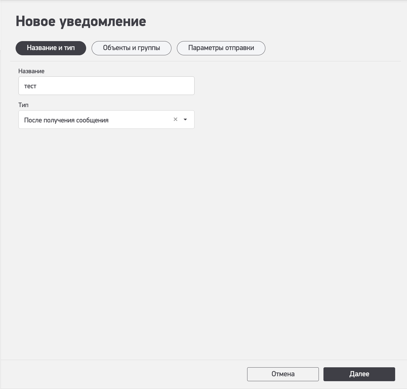 Печать × После получения сообщения Данное уведомление необходимо для отслеживания всех сообщений приходящих от объекта в реальном ремени. При создании уведомления никаких дополнительных полей заполнять не надо: Последнее изменение: 2025/12/15 08:36 — csp