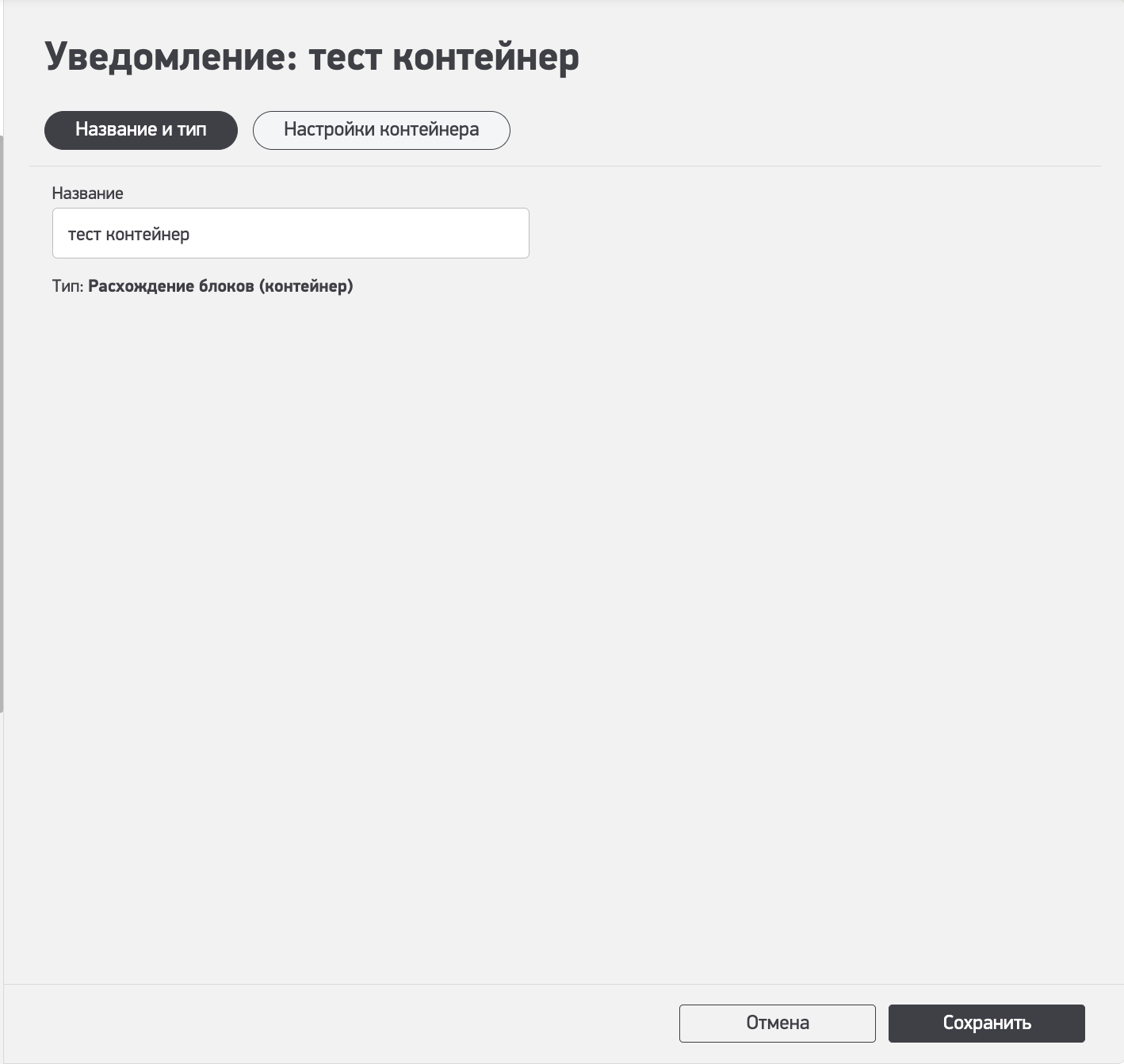Для создания уведомления необходжимо сначала написать название и выбрать тип: