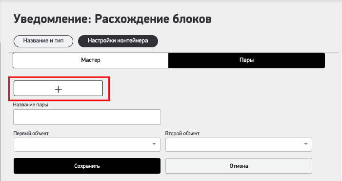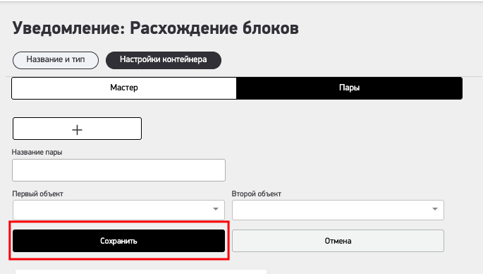 В развернувшемся окне нужно прописать название пары и выбрать объекты которые будут в нее входить: