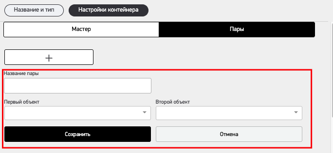 Для настйроки пар объектов необходимо зайти в Настройки контейнера и :