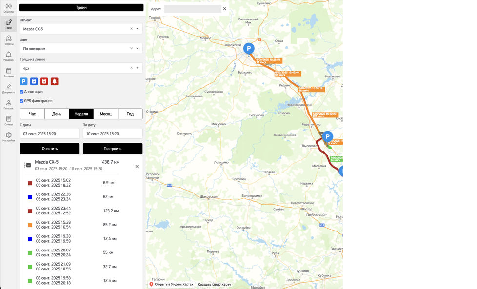 1. Изменили отображение треков, добавили отметки о заправках и уведомлениях на карте: