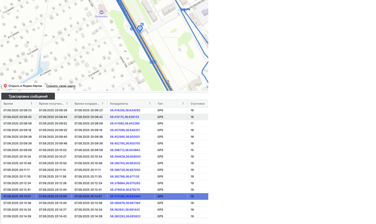 Теперь при нажатии на точку на треке в отчете трассировки сообщений(точки координаты за период) сервис будет выделять это сообщение в отчет: