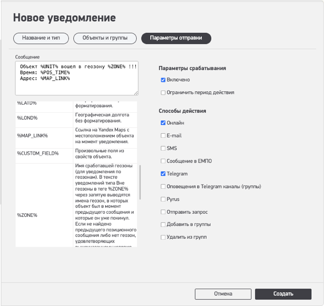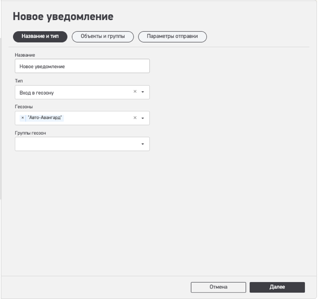 Теперь создание уведомлений происходит пошагово и разбито на 3 блока.