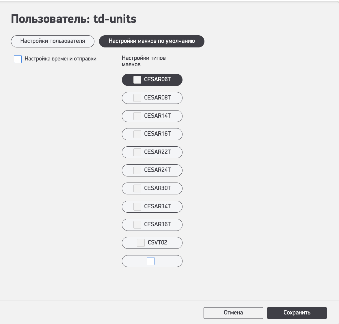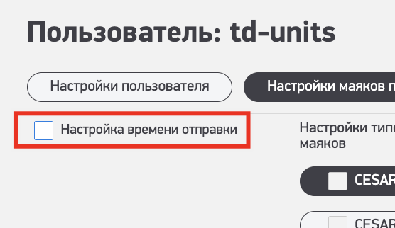 Для включения работы сервиса проверки необходимо перейти в вкладку Настройки маяков по умолчанию и включить проверку поставив галочку в чекбоксе Настройка времени отправки:
