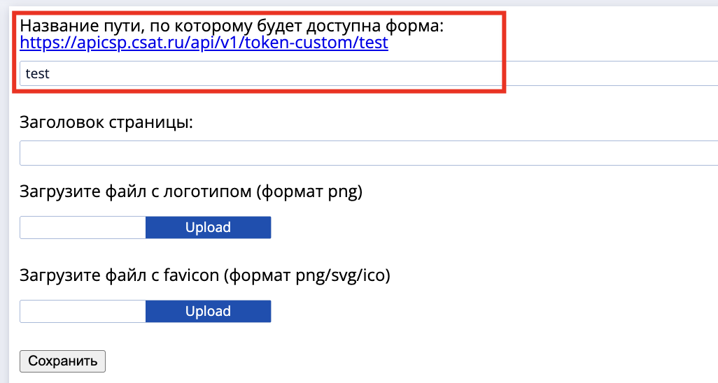 - Название пути, по которому будет доступна форма - название создаваемого пути для перехода на страницу авторизации. при заполнении появится ссылка: